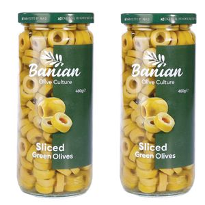 زیتون سبز اسلایس بانیان - 460 گرم بسته 2 عددی