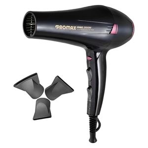 سشوار حرفهای پرومکس مدل MA-8890، موتور AC با توان مصرفی 9000 وات، دارای قابلیت تعویض سری، عملکرد توربو، دارای متمرکزکننده، با حالت صافکننده، وزن 650 گرم، تنظیم حرارت 2 حالته و کنترل سرعت 2 حالته، به همراه متمرکزکننده باریک